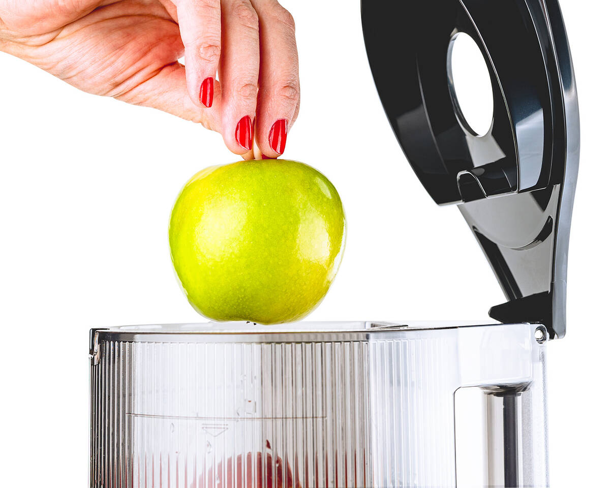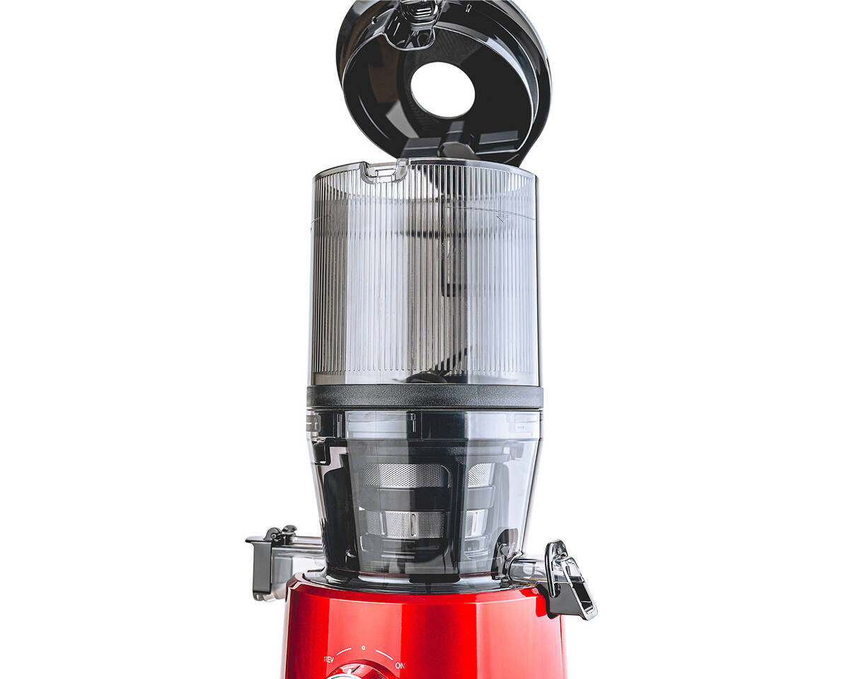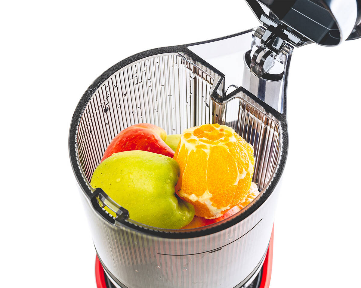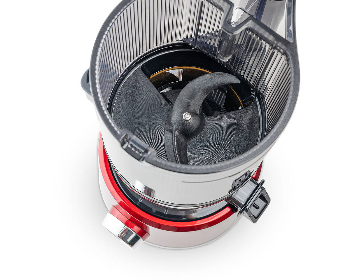 Perché alimentare ogni singolo prodotto a mano, quando il Sana 878 lo fa per voi? Basta riempire la grande tramoggia automatica da 2 litri con i vostri prodotti preferiti, accendere lo spremiagrumi e andare via. Il sistema a doppia lama seleziona, taglia e alimenta i prodotti nello spremiagrumi, lasciandovi il tempo di fare altre cose. Un'apertura circolare nel coperchio consente di inserire altri ingredienti senza aprire il coperchio.